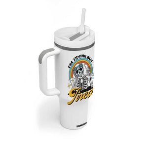 Placeholder Funny I'm Trying But Tired Tumbler With Handle - PrintYourWear - Print Your Wear