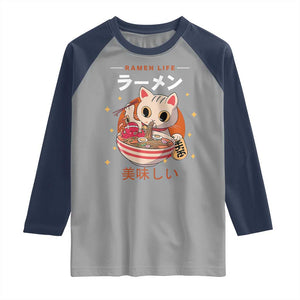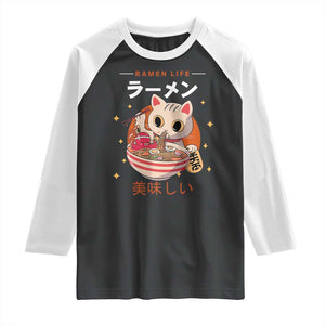 Funny Japanese Kawaii Cat Neko Ramen Raglan Shirt