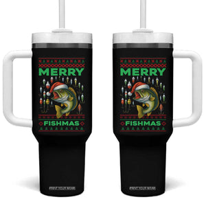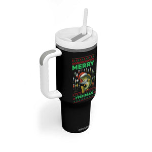 Funny Merry Fishmas Ugly Sweater Tumbler With Handle Fisherman Christmas Gift