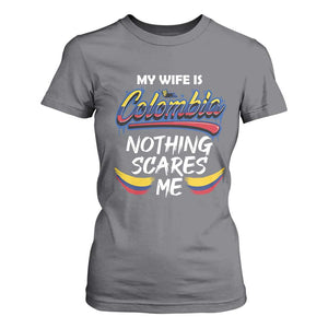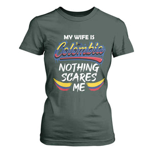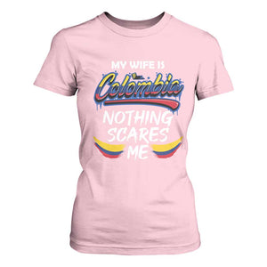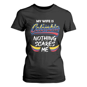 Funny My Wife Is Colombian T Shirt For Women Nothing Scares Me Colombia Flag