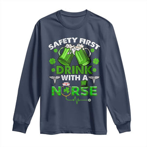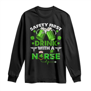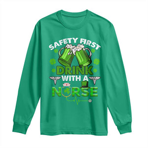 Funny Nurse St Patricks Day Long Sleeve Shirt Safety First Drink With A Nurse Beer Lovers
