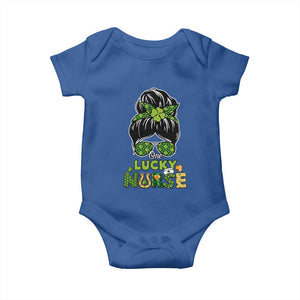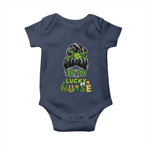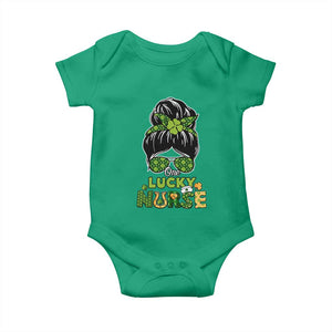 Funny One Lucky Nurse St Patricks Day Baby Onesie Scrub Life with Messy Bun