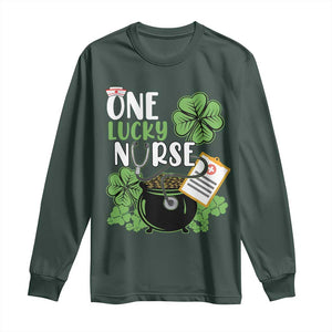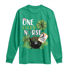 Funny One Lucky Nurse St Patricks Day Long Sleeve Shirt Scrub Life RN ICU ER with Stethoscope