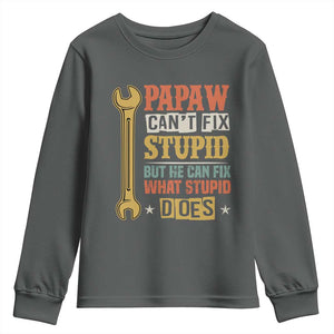 Funny Papaw Can't Fix Stupid But He Can Fix What Stupid Does Youth Sweatshirt Grandpa Father's Day