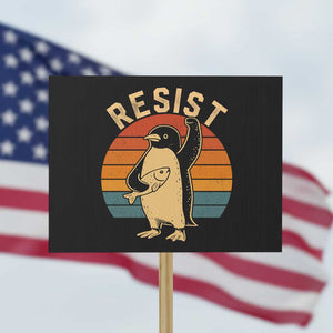 Funny Penguin Resist Protest Sign Against Tariffs Retro Vintage