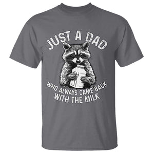 Funny Raccoon Dad Meme T Shirt Just A Dad Who Always Came Back With The Milk Father Birthday Father's Day