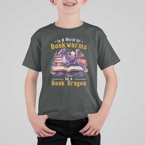 Placeholder Funny Reader T Shirt For Kid In A World Full Of Bookworms Be A Book Dragon - PrintYourWear - Print Your Wear