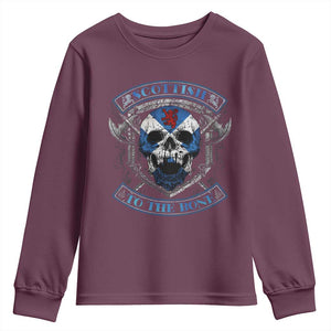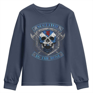 Funny Scottish Viking Youth Sweatshirt Scottish To The Bone Vintage Scottish Lion Rampant Flag Skull