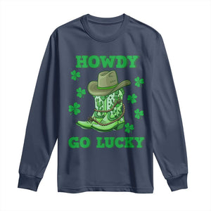Placeholder Funny St Patricks Cowboy Long Sleeve Shirt Howdy Go Lucky Boots Retro Irish Western - PrintYourWear - Print Your Wear