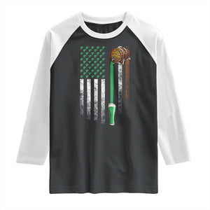 Funny St Patrick's Day Irish Beer Drinking Raglan Shirt Vintage Irish American Flag TS11
