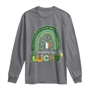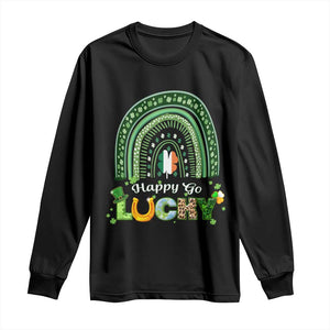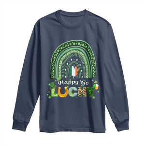 Funny St Patricks Day Long Sleeve Shirt Happy Go Lucky Shamrock Rainbow