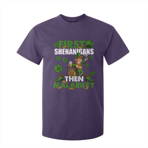 Placeholder Funny St Patricks Day T Shirt For Kid First Shenanigans Then Malarkey Drinking Leprechaun - PrintYourWear - Print Your Wear