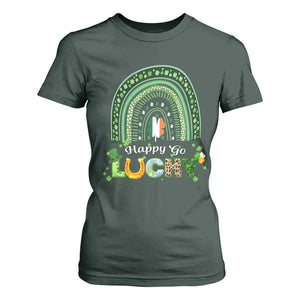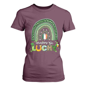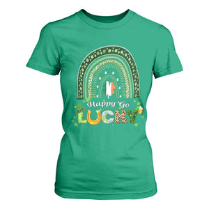 Funny St Patricks Day T Shirt For Women Happy Go Lucky Shamrock Rainbow