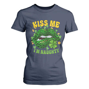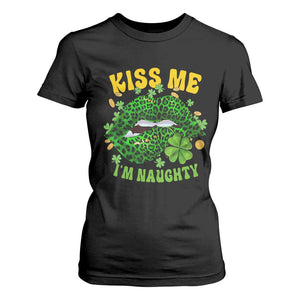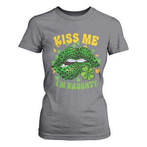 Funny St Patricks Day T Shirt For Women Kiss Me I'm Naughty Irish Women Leopard Biting Lips