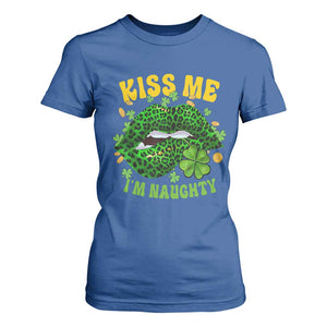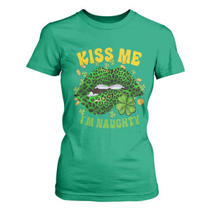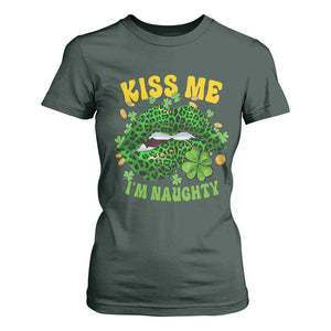 Funny St Patricks Day T Shirt For Women Kiss Me I'm Naughty Irish Women Leopard Biting Lips TS02
