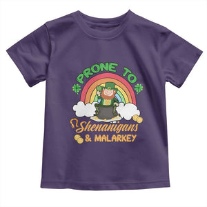 Funny St Patricks Day Toddler T Shirt Prone To Shenanigans and Malarkey Cute Leprechaun Rainbow
