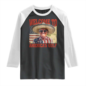 Funny Trump 2025 Welcome To America's Gulf Raglan Shirt Vintage American Flag Sombrero Hat TS11