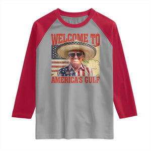 Placeholder Funny Trump 2025 Welcome To America's Gulf Raglan Shirt Vintage American Flag Sombrero Hat - PrintYourWear - Print Your Wear