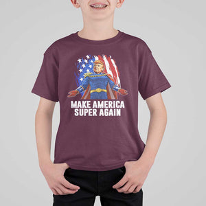 Funny Trump T Shirt For Kid Make America Super Again Superhero Donald President 2024