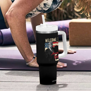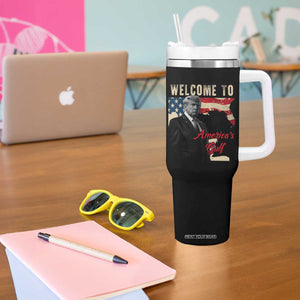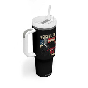 Funny Trump Welcome To America's Gulf Tumbler With Handle Vintage American Flag
