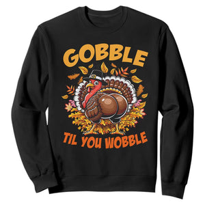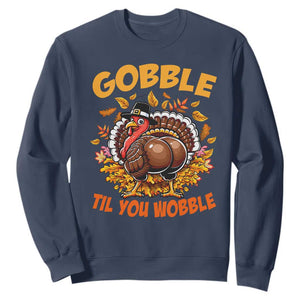 Funny Turkey Sweatshirt Gobble Til You Wobble Thanksgiving Day