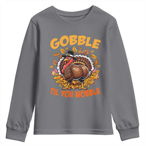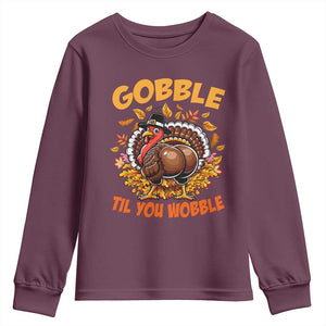 Funny Turkey Youth Sweatshirt Gobble Til You Wobble Thanksgiving Day