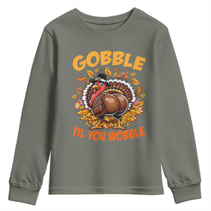 Funny Turkey Youth Sweatshirt Gobble Til You Wobble Thanksgiving Day TS10