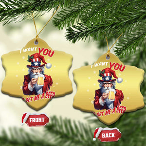 Funny Xmas Beer Christmas Ornament I Want You To Get Me A Beer Santa Uncle Sam