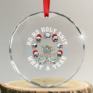 Funny Xmas Crystal Glass Ornament Ho Ho Holy Shit What A Year Skeleton Skull