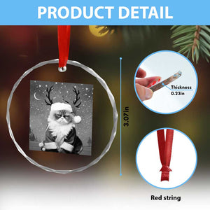 Funny Xmas Santa Grumpy Cat Crystal Glass Ornament