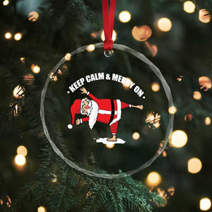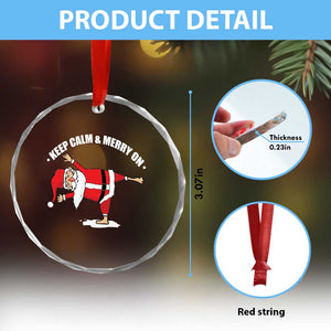 Funny Xmas Yoga Crystal Glass Ornament Keep Calm And Merry On