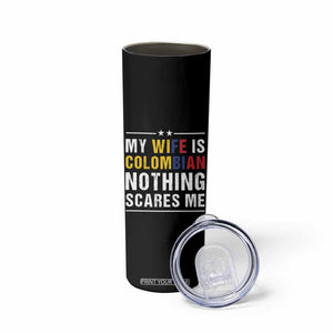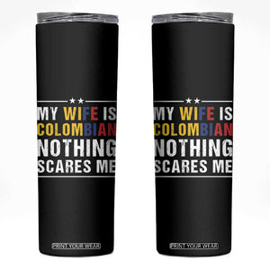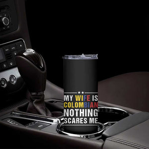 Gift for Colombian Husband Father Dad Birthday Skinny Tumbler My Wife Is Colombian Nothing Scares Me Colombia Coffee Cup Tea TB10