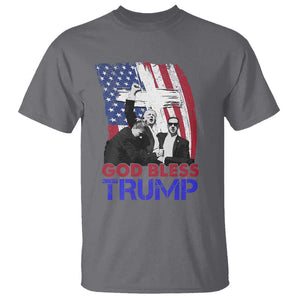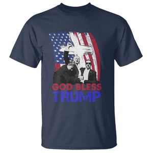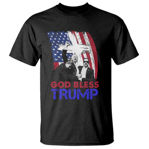God Bless President Trump T Shirt Pennsylvania 2024 Raised Fist American Flag Cross TS02