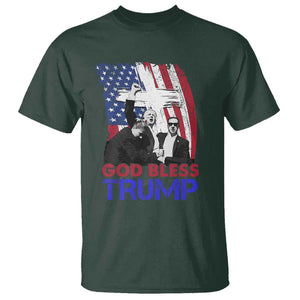 Placeholder God Bless President Trump T Shirt Pennsylvania 2024 Raised Fist American Flag Cross - PrintYourWear - Print Your Wear