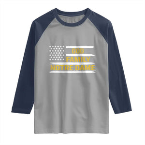 Placeholder God Family Notre Dame Raglan Shirt Indiana Fighting Irish Shamrock American Flag - PrintYourWear - Print Your Wear
