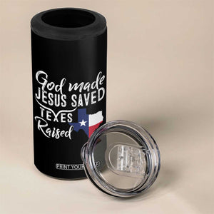 God Made Jesus Saved Texas Raised 4 in 1 Can Cooler Tumbler