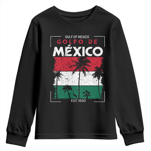 Golfo De Mexico EST 1550 Youth Sweatshirt Vintage Mexican Flag Palm Tree