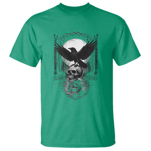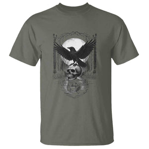 Placeholder Gothic Raven On Skull With Full Moon T Shirt - PrintYourWear - Print Your Wear