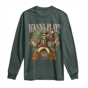 Halloween Baseball Long Sleeve Shirt Funny Wanna Play Dabbing Pirate Skeleton Catcher TS12