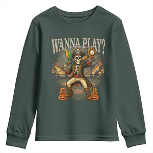 Halloween Baseball Youth Sweatshirt Funny Wanna Play Dabbing Pirate Skeleton Catcher TS12
