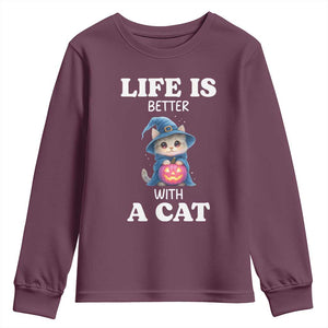 Halloween Kitty Youth Sweatshirt Cute Life Is Better With A Cat