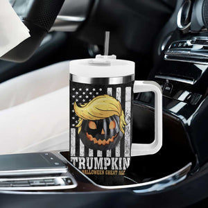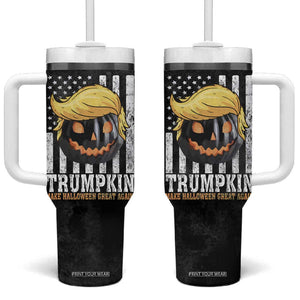 Halloween Trumpkin Tumbler With Handle President Donald Trump 2024 Make Halloween Great Again US Flag