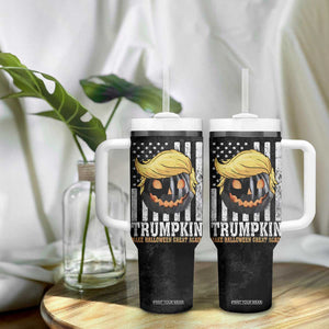 Halloween Trumpkin Tumbler With Handle President Donald Trump 2024 Make Halloween Great Again US Flag TB10