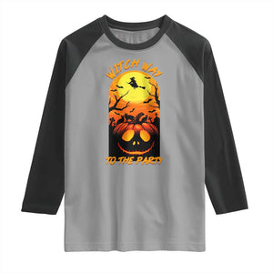 Placeholder Halloween Witch Way To The Party Raglan Shirt Black Cat Pumpkin - PrintYourWear - Print Your Wear