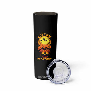 Placeholder Halloween Witch Way To The Party Skinny Tumbler Black Cat Pumpkin - PrintYourWear - Print Your Wear