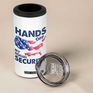 Hands Off My Social Security 4 in 1 Can Cooler Tumbler Patriotic USA Retirement Protection American Flag