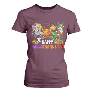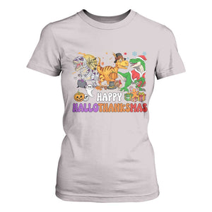 Happy HalloThanksMas Dinosaur T Shirt For Women Halloween Thanksgiving Christmas