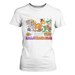 Happy HalloThanksMas Dinosaur T Shirt For Women Halloween Thanksgiving Christmas TS02