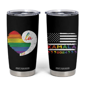 Harris Comma La Tumbler Cup Kamala 2024 LGBT Rights Rainbow Heart