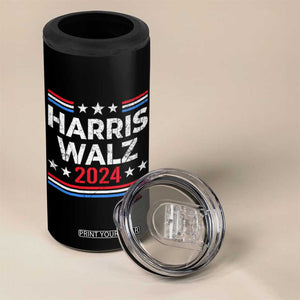 Harris Walz Waltz 2024 4 in 1 Can Cooler Tumbler Kamala Presidential Election Retro Stripe